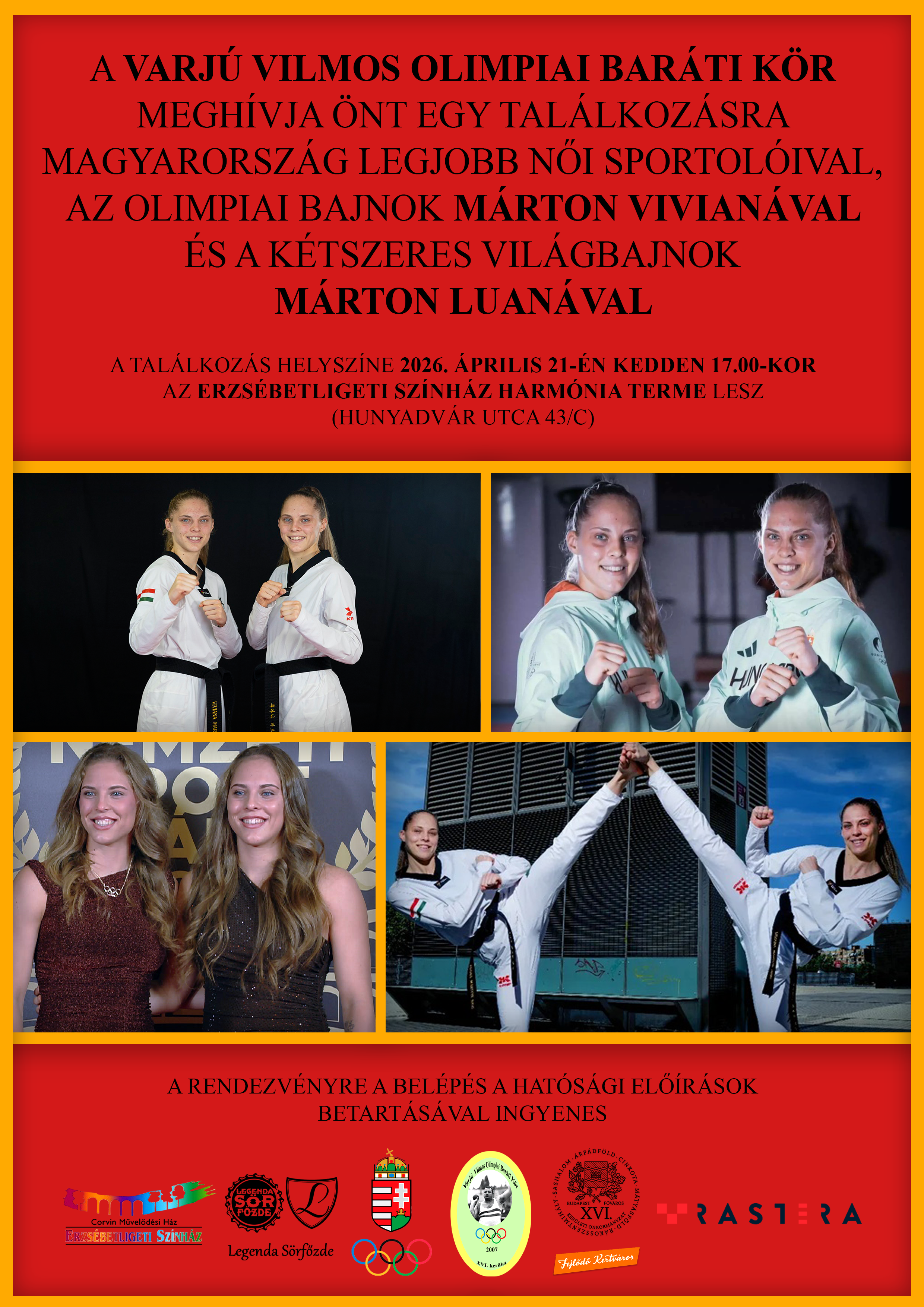 A Varjú Vilmos Baráti Kör vendége lesz az olimpiai bajnok Márton Viviana és a kétszeres világbajnok Márton Luana.